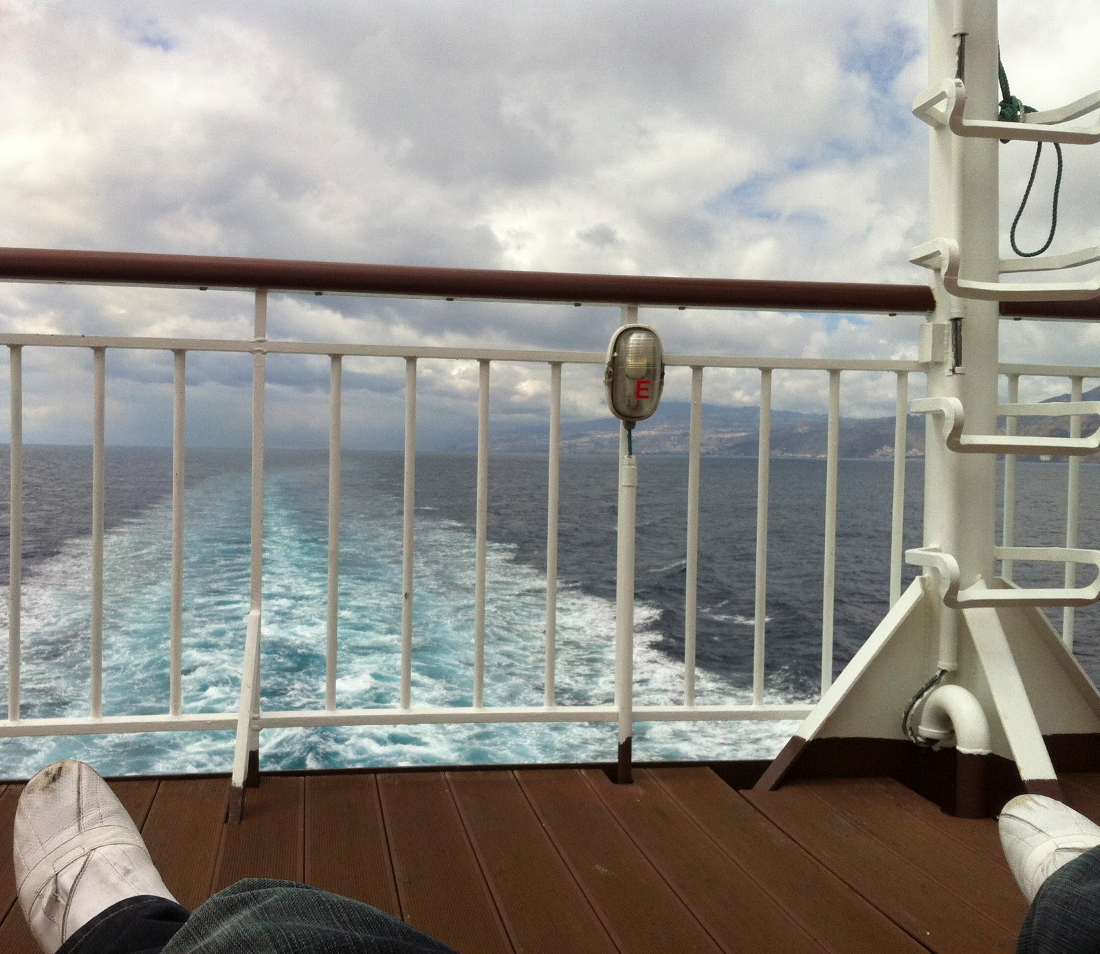 Ahí estábamos los tres: Nuri, Laura (la compañera de piso de Nuri) y yo, entrando con aquellos coches llenos hasta los topes de nuestras cosas, al barco que nos devolvería a nuestras casas. Los billetes que teníamos nosotros eran con acceso a la Sala VIP que, dicho así, suena como algo muy importante. No era así, solo nos daba acceso a una sala con unos asientos más cómodos y la posibilidad de beber café cuando quisiéramos. Una vez aparcados nuestros coches en la parte baja del barco, subimos a la recepción con algo de ropa y la comida que habíamos preparado para el viaje. Después de esperar nuestro turno nos dieron las tarjetas y buscamos la Sala VIP, donde dejamos nuestras mochilas y fuimos a dar una vuelta por el barco.