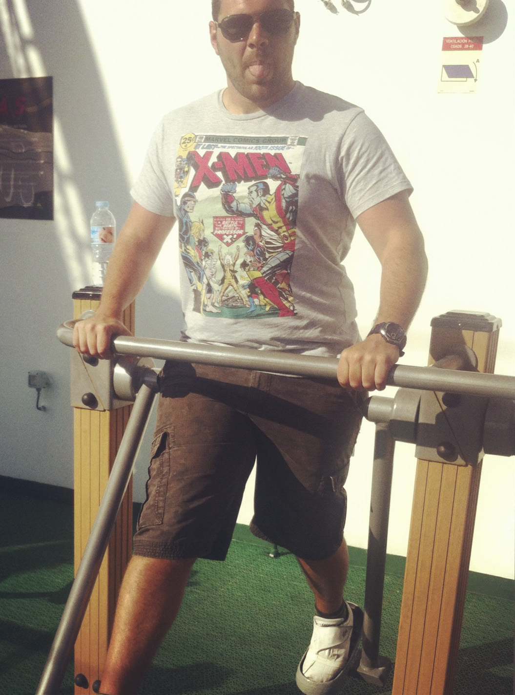 Subimos a la parte más alta del barco y seguimos con nuestra particular exploración. Allí arriba el viento corría con una fuerza increíble. Entre el movimiento del barco, que se empezaba a notar y el viento, no era raro dar un mal paso y desequilibrarte. En esta parte había como una especie de "minigimnsaio" al aire libre donde poder entrenerte un rato y distraerte un poco más.