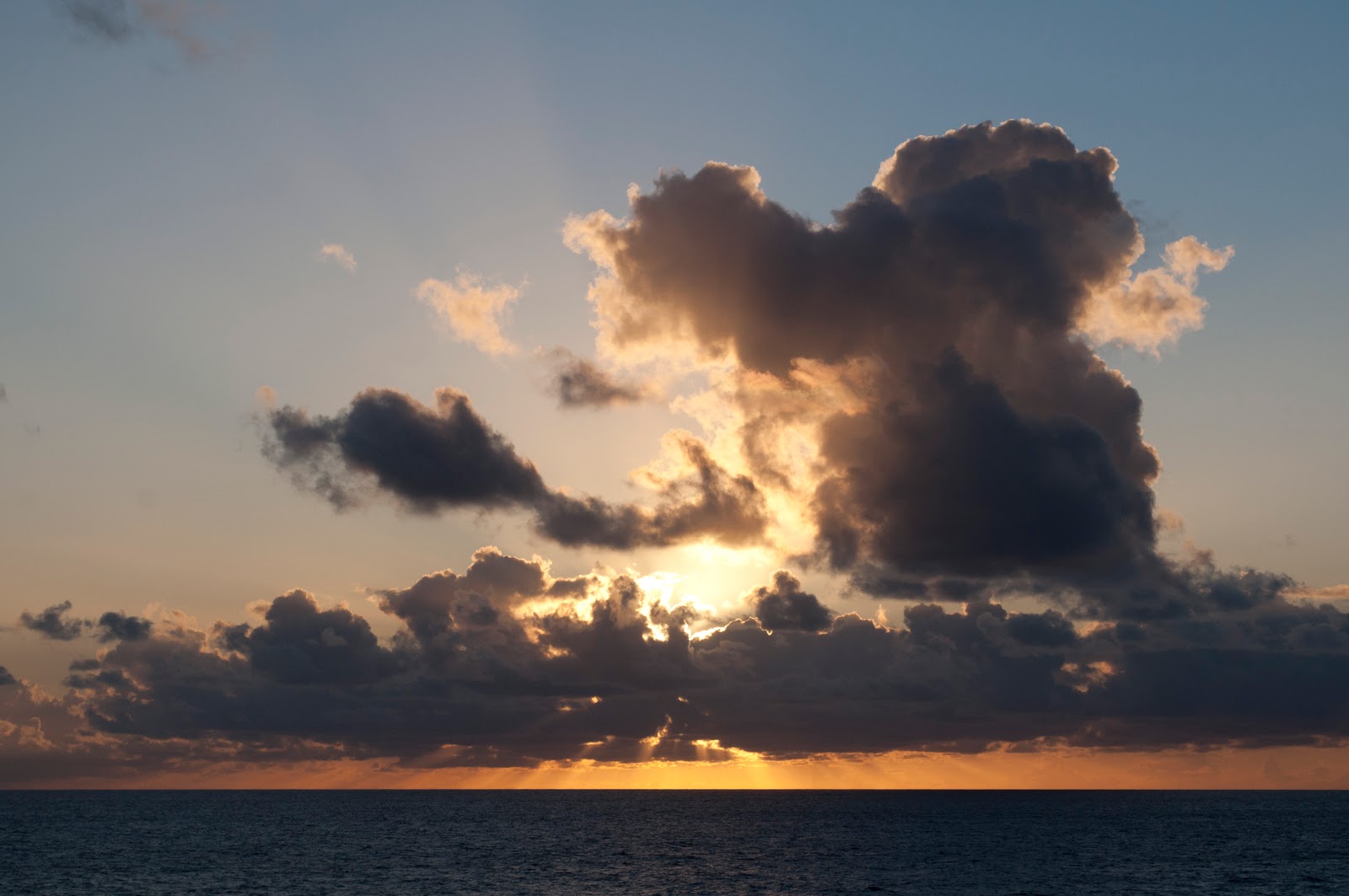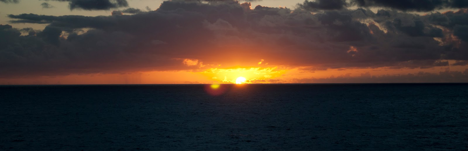 Como buenos españoles había que echar la siesta de rigor y nos fuimos para nuestros sitios a descansar un poco. Yo no podía y aproveché ese tiempo para irme a dar una vuelta yo solo por el barco y echar algunas fotos. La verdad que este paseo fue como una conversación conmigo mismo y reflexionar en todo lo que me estaba pasando. Creo que hasta ese momento no lo había hecho con tanto detenimiento y calma. Me preguntaba que pasaría después, si era lo correcto, si todo podría ser de otra forma. Obviamente, vosotros que me leéis y lo veis desde fuera, seguramente diréis que sí, pero os puedo asegurar que no es tan fácil. A veces la incertidumbre y el miedo te abordan cuando estás más tranquilo, quiero pensar que para que no bajes la guardia y estés atento de lo que pasa a tu alrededor. Yo mismo me respondía o, mejor dicho, me convencía de que aquello iba a salir bien, que era lo correcto y también que ocurría en el momento oportuno. Me acordaba también de una frase que mi gran amigo Juanra me dijo una vez: "todos los cambios son buenos, todos son para mejor". En ella me apoyaba y me sigo apoyando hoy día, y de momento tiene la razón. Me decía a mí mismo que iba a ser duro, que seguramente querría tirar la toalla más de una vez, pero que debería pensar en lo que me esperaba. Fue una forma inconsciente de fortalecerme para lo que vendría después y por supuesto que mi decisión no fuera en vano.Ahora que escribo esto para compartirlo con vosotros me río de lo trascendental que me puse. Pero creedme, es necesario. Pienso que es necesario pararse, estar sólo y pensar en donde estas, situarte en todos los sentidos. Para esto me viene otra frase que leí de Steve Jobs cuando fue a dar una conferencia a la Universidad de Stanford: "si hoy fuera tu último día de vida, ¿querría hacer lo que estoy haciendo?". Mi respuesta fue sí.Un "sí", rotundo aunque aquello me doliera por lo que dejaba atrás y lo que tendría que hacer después. Después de aquel momento tan trascendental, volví a la sala en busca de las demás y merendar algo. De nuevo salimos afuera donde pudimos observar una puesta de sol preciosa. Os la dejo en las siguientes fotos.