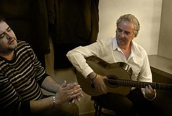 Félix R. Lozano. En la foto, cantaor y tocaor hacen voces en camerinos.