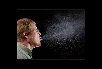 Por ejemplo, el gobierno británico, en sus folletos de información sobre la epidemia de gripe porcina en el 2009, utilizó la imagen de un hombre estornudando que escupía una explosión de gotas de saliva directamente hacia el lector y en todas direcciones.
