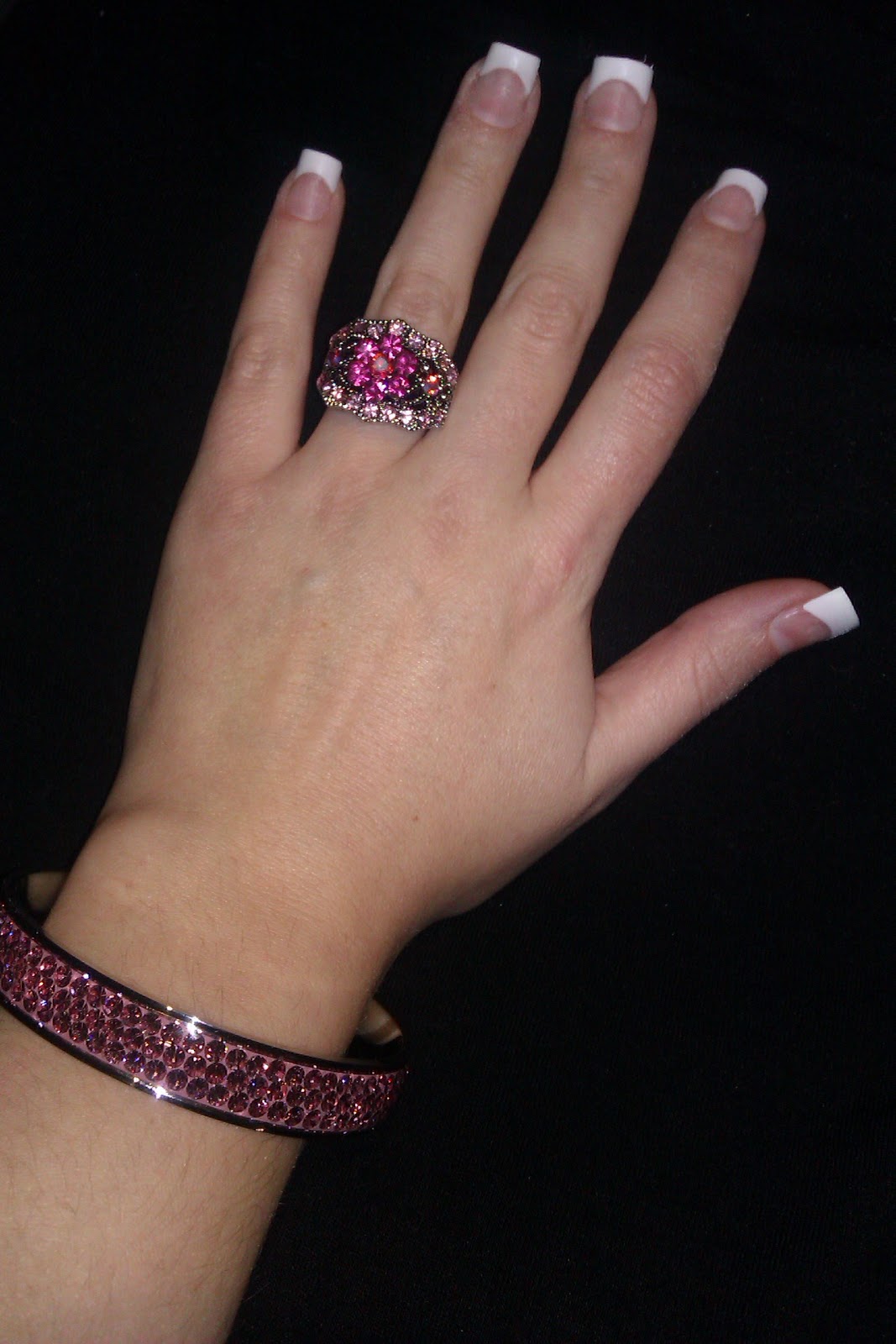 Está disponible en 8 colores, pero yo quería que conjuntase con el brazalete, así que lo elegí rosa. Es ajustable, así no tenemos problemas de medidas. Sus materiales: circonita y acero. No deja el dejo verde como otras bisuterías además es muy vistoso, brilla mucho y la gente le llama mucho la atención. No descarto cogerme otro en negro, más para la noche.