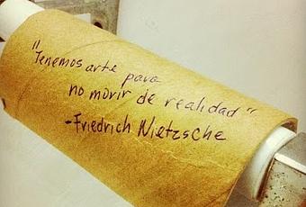 Arte:- cilindro de cartón, tinta azul, cámara del iPhone 4 (filtro de luz vía Instagram). Realidad:- cagando en el baño de mi trabajo (despachador de piezas de auto en un almacén).