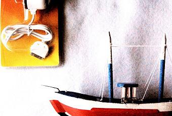 Me puse a unir cabos sueltos, pensé mucho en lo que le gusta, a qué se dedica y se me ocurrió finalmente hacerle un cargador para su móvil, un IPhone, que viene a ser algo así como una extensión más de su ser. Pero la idea tenía que concretarse en formato marino. JA!!. ....Cómo!!! y tenía menos de un día!!.