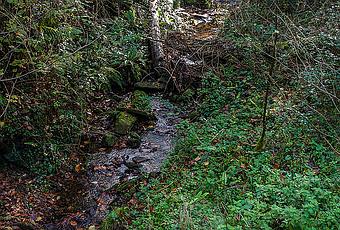 Desde lo alto del puente de piedra vemos el agua del Txirripa que acaba de manar de la tierra pocos metros más allá.