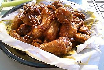 Preparación: Lavar bien las alitas, agregarlas sal y pimienta, pasarlas por harina y luego freírlas en aceite bien caliente y reservar. Para preparar la salsa, en una cacerola añadir la margarina, saltear el ajo ligeramente, solo para perfumar. Agregar la pulpa de mango, ají, azúcar, el caldo y cocinar hasta reducir. Bañar el pollo con esa salsa.