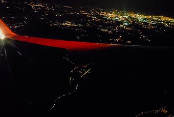 Luces de la ciudad de San José, capital del Costa Rica. Empieza la aventura. Bueno, en realidad ya empezó en el aeropuerto del Prat.