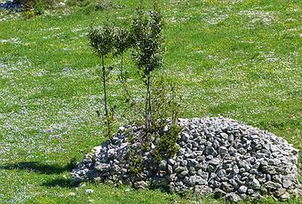 Muchos colaboraron en llevar aquel montón de piedras al centro del terreno, no se sabe muy bien si era para hacer una muralla o simplemente limpiar el terreno. Allí quedaron tanto tiempo que hasta de lo más profundo crecen pequeños arbolillos.