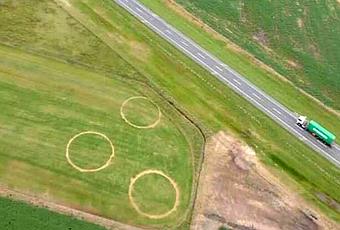 Los círculos son de grandes proporciones y aparecieron repentinamente en una de las cabeceras de la pista de césped del Aeroclub de esa localidad rural de la provincia de Buenos Aires, a metros de la ruta Nacional N° 7, según informó Jorge Fernández Gentile en el blog