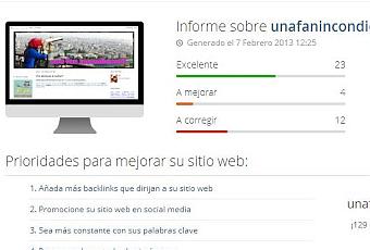 Pero hoy he probado una nueva herramienta que alguien recomendó en Twitter y que me ha gustado mucho. WooRank, se llama, me ofrece ni más ni menos que 129 consejos a medida para mejorar mi marketing online (el de Una Fan Incondicional), entre los consejos que me da vienen a ser cosas que yo ya sabía que no "hacía bien" (si mi objetivo fuese posicionarme mejor y conseguir más visitas).