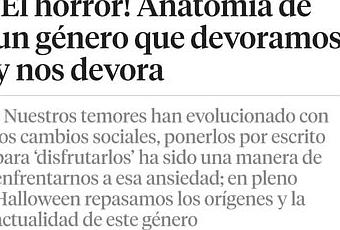 ¡El horror! Anatomía de un género que devoramos y nos devora, por Isabel Gómez Menchón en La Vanguardia: