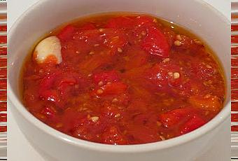 Ingredientes:· Seis pimientos rojos grandes.· Cuatro cucharadas de aceite de oliva.· Tres dientes de ajo.· Una pizca de cominos.· Sal.Preparación (para cuatro personas).Poner los pimientos enteros bien lavados en una fuente de horno.Asar a fuego medio dándoles la vuelta de vez en cuando, para que se asen por igual por ambos lados.Sacarlos del horno y quitarles la piel antes de que se enfríen para facilitar su despegue.Limpiarlos de semillas y trocearlos.Colar el caldo del asado y añadirlo a los pimientos.En un mortero, majar los ajos y los cominos y se añaden a los pimientos junto con el aceite de oliva y la sal.Fuente: tomelloso.esFoto: lossaboresperdidos