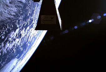 TechDemoSat-1 también se realizó un autorretrato en órbita, donde se aprecia la antena direccional del ingenio. [Vía]