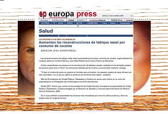Os pongo esta noticia publicada por la agencia de noticias Europa Press donde alertamos sobre el aumento de las reconstrucciones del tabique nasal como uno de los riesgos añadidos al consumo de cocaína.