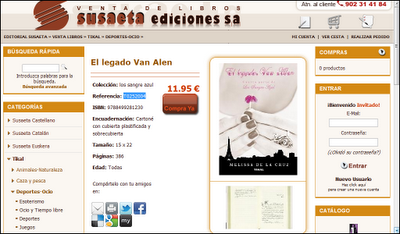 La editorial Susaeta por fin ha subido a su catálogo las fichas técnicas de Revelaciones y El legado de Van Alen. Dato sorprendente teniendo en cuenta que justo antes del verano nos pusimos en contacto con ellos, y se nos desmintieron los rumores sobre las dos cubiertas que rondaban por Internet, así como la existencia de los libros.