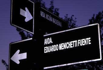 El otro día pasaba con mi primo en auto cerquita del vertedero Estadio Monumental y veo con estupor que a la salida del metro pedrero de la línea 5, hay un letrero de intersección de calles que dice “Avenida Vicuña Mackenna – Avenida Eduardo Menichetti”.