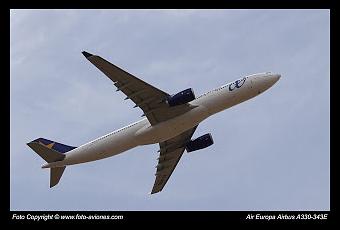 El avión de la fotografía de la izquierda es un Airbus A330 perteneciente a la compañía aérea de Air Europa, fue fotografiado el día 1 de Septiembre de 2015 a las 15:35 horas momentos después de despegar del aeropuerto Adolfo Suárez Madrid-Barajas.Este avión empezó el 29 de noviembre de 2014 en la compañía japonesa Skymark Airlines con matrícula JA330F; el 7 de julio de 2015 pasa a la compañía española Air Europa cambiando la matrícula a EC-MHL.
