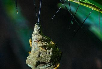 El agua de la lluvia no llega a este nido de avispas construido bajo la hoja de una planta. Además está sujeto a la punta de una de las espinas de dicha hoja.