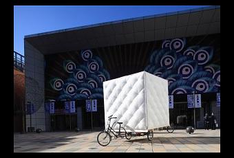 Se trata de un cubo acolchado, que está colocado en la parte trasera de una bicicleta. En cuanto a sus características, hemos de decir que tiene dos metros de ancho y el material que se ha utilizado, para su fabricación, es poliuretano con espuma, que cubre una estructura de madera. Esto es así, porque la madera no es resistente al agua ni es aislante del frío.