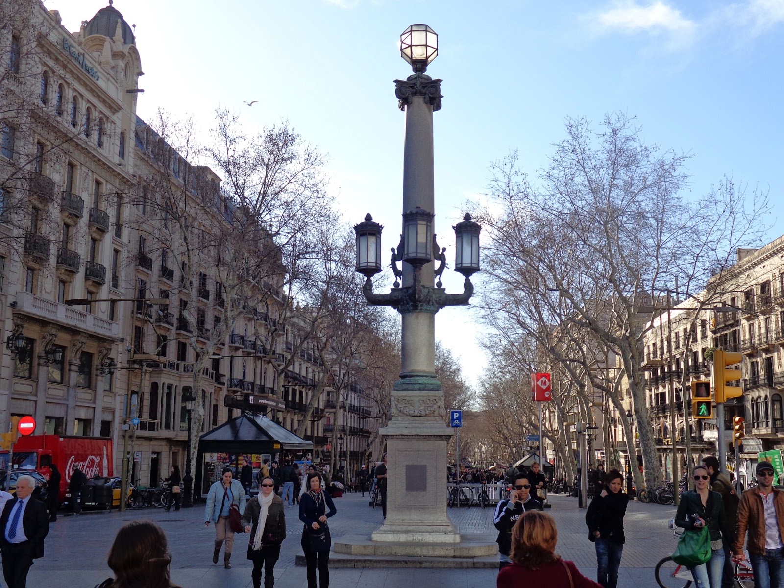 Las Ramblas, también llamada, en catalán Les Rambles, es el nombre de un emblemático paseo que discurre entre la Plaza de Cataluña (en catalán, Plaça de Catalunya), al puerto antiguo. En ella se ven puestos de venta de flores, animales, terrazas de algún bar y el famoso Mercado de la Boquería.-