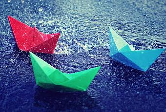 Y el asfalto entonces es río de agua, y llevados por la corriente de esas gotitas de magia que nos cubren los instantes y reavivan los lánguidos latidos ávidos de sueños, muerdo las palabras hasta encallar nuestra frágil consistencia, como barquitos de papel, a la deriva... sin muelles ni amarras, sin puertos.