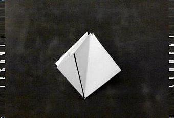 Puede que con los pliegues que hayamos hecho no nos quede como en la foto. Debemos tratar de que la punta pequeña que sobresale quede en forma de triángulo, por supuesto, será necesario crear otros dobleces. Así se tendrá que ver: