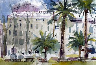 Este sábado día 2 de febrero Carlos Díez nos convocaba para pintar en el entorno de Jardines Albia de Bilbao, el primer sábado de enero se pintó en el entorno del Arenal Bilbaino. En lo meteorológico hizo un día desapacible, con granizadas, chaparradas y algún que otro momento de sol. Desde el primer momento, los pocos que nos animamos, tuvimos que ponernos a resguardo de la lluvia en la iglesia de San Vicente. Desde allí pudimos pintar algo a pesar del frío que hacía.