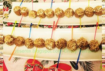 Sacamos la masa del frigorífico y hacemos bolitas.Tostamos ligeramente el ajonjolí.Ponemos los pinchitos en las bolitas (los pinchitos que utilicé los compré en Mercadona, son monos y tienen buen precio, además se lavan y los puedes reutilizar)