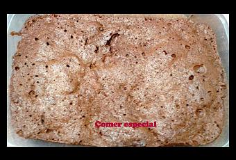 aceite de oliva suave (o mitad oliva y mitad girasol), 40gr de harina con levadura y 25gr de nueces peladas.Preparación: Primero fundimos el chocolate en el micro durante 1 minuto con un poco de agua (o la cantidad mencionada de leche de soja o normal), con mucho cuidado, no a temperatura máxima porque se quemaría. Añadimos el aceite al chocolate y removemos con el tenedor hasta que se integre perfectamente, entonces incorporamos el edulcorante líquido y los 2 huevos, seguimos removiendo bien. A continuación vertemos la harina hasta que quede una mezcla lo más homogénea posible y, por último, las nueces en trocitos. Mezclamos bien y lo vaciamos en un molde para microondas engrasado. Lo calentamos durante 4 minutos y medio a máxima potencia y dejamos reposar 5 minutos dentro.