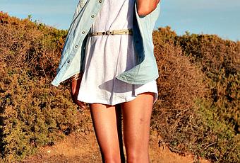 camisa vaquera: SuitBlanco; camiseta: zara; cinturón: SuitBlanco; sandalias: Massimo dutti; gafas: mango Después de un día de playa en las calas de Roche, un paseo con vistas al mar antes del atardecer.