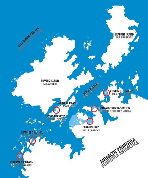 Y en nuestro periplo virtual por la Antártida hoy me gustaría compartir con vosotros la imagén uno de los fenómenos naturales mas bellos del mundo; un impresionante conjunto de columnas talladas en hielo por la madre naturaleza en este maravilloso lugar conocido como el Canal de Lemaire.Alli estan las Columnas del Canal de Lemaire, un espacio mágico y un poco estremecedor en el que la pequeñez del hombre se hace más patente que nunca. En este canal los grandes fragmentos de glaciar quedan atrapados en el canal y la acción de las corrientes los va modelando de esta caprichosa forma cual columnas de una gran catedral, por ello también es popularmente conocido como "el cementerio de los glaciares" porque los que hasta alli llegan son lentamente desintegrados por la continua acción de las corrientes.Según el oceanógrafo polar Mark Brandon, esto ocurre porque el agua profunda, al estar más caliente que la hallada en la superficie, derrite el hielo a un ritmo más acelerado. Esta pérdida de masa lleva a que lentamente el fragmento de glaciar vaya saliendo uniformemente a flote, exponiendo de esta manera sus partes más altas a la superficie, donde el aire frío se encarga de mantener la forma de las mismas. Combinado con los cambios concéntricos de las corrientes del canal, se forman así los arcos y columnas uniformes que son generalmente avistadas con enorme asombro por los intrépidos viajeros que se animan a llegar hasta esta maravilla de la naturaleza. La tripulación del MS Fram llama al Canal de Lemaire el "Kodak Crack" por la cantidad de disparos de las cámaras que se escuchan durante la travesía. Con 11 kilometros de longitud y 1.500 metros de anchura, fue descubierto por una expedición alemana durante el verano austral de 1873-74, pero no fue navegado en su totalidad hasta el viaje de Adrien de Gerlache a bordo del "Bélgica", en 1898-99. Gerlache lo bautizó en honor del explorador del Congo Charles Lemaire. El paisaje es sobrecogedor. El Fram atraviesa unas aguas sembradas de galletas de hielo, flanqueado por imponentes acantilados y glaciares que hunden sus lenguas en el mar. El viento se ha apropiado en exclusiva de la banda sonora de este rincón de la península Antártica, un desierto helado e inhóspito que provoca un subidón de emociones.El incremento de barcos turisticos y cruceros de hasta 2000 pasajeros ha puesto en evidencia el riesgo que supone navegar entre bloques de hielo; por lo que dicha cuestión ha sido abordada en la reunión anual del Tratado Antártico, celebrada en Washington, en la que se conmemoran los 50 años de este tratado multilateral del que España forma parte junto con otras 45 naciones.
