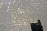 La Caravana por la Paz con Justicia y Dignidad, encabezada por el poeta Javier Sicilia, paso por la cd. De Chihuahua el jueves 9 de junio de 2011. Hubo varios eventos pero yo solo pude asistir al realizado frente a Palacio de Gobierno, y eso en la última parte. Para mi sorpresa no había mucha gente, la mayoría de las personas eran de la caravana, los chihuahuenses no hicieron acto de presencia. En el lugar se guardo un minuto de silencio al colocar una placa en honor a Maricela Escobedo asesinada previamente en este mismo sitio, cuando pedía justicia por la muerte de su hija.Varios medios de información cubrieron el evento. La radio daba cortes informativos cada hora del acontecer de la caravana en la ciudad. Pero, la gente no dejo de realizar sus actividades diarias para unirse a la manifestación. La caravana comprendía varias temáticas que injieren a las minorías; se podía leer carteles alusivos a la protección del medio ambiente y de los animales, a personas desaparecidas, a la problemática del magisterio en Oaxaca y a la diversidad sexual. Los miembros de la caravana se podían identificar fácilmente por su entusiasmo -a pesar de las altas temperaturas-, que contagiaba a los ahí presentes. Por la tarde recibí la llamada de dos amigos, preguntándome si sabía algo del evento, sí había asistido a él; estos amigos se lamentaron el no asistir argumentando “no me entere, hasta ahorita acabo de escucharlo”.