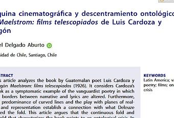 Se publicó en la revista SYMPOSIUM mi artículo sobre Maelstrom de Cardoza y Aragón. Copio imágenes de la página de presentación y del primer párrafo, que introduce la figura de Cardoza como fundamental dentro de las vanguardias latinoamericanas.