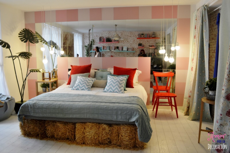 Un espacio muy romántico, coqueto, femenino y con un aire muy campestre. Me encantó el detalle del canapé de paja y la mesa de escritorio colgante.También tenía un toque ligeramente shabby chic (me recordaron ese estilo los colores elegidos para la decoración del dormitorio, además de elemnetos recuperados con aspecto "viejuno", muy característico de este estilo de decoración). Country y romántico, estas serían las palabras con las que definiría este ambiente.