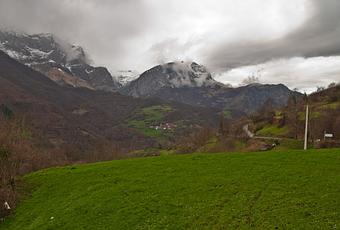 Mas abajo donde la carretera se junta con la que habíamos subido, encontramos de nuevo el río, mullendo sus aguas entre calizas y varas de avellano espigadas y sin hojas; meciendo su clara corriente, con un son monótono, ideal para acunarte a la hora de ir a dormir. Las escasas primaveras están desteñidas, marchitas, como si echaran de menos el sol. La hiedra se descuelga desde las altas rocas, hundiéndose en la corriente. El agua fluye derecha sin darse la vuelta, obligada a encajonarse entre la tierra verde. El día de excursión se estaba terminando, una parada en Cangas de Onís a tomar algo y luego carretera a casa, para llegar al oscurecer.