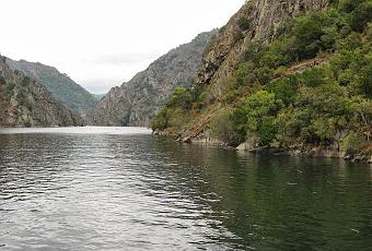 El caudaloso río Sil a su paso por tierras de Orense, cerca de su desembocadura en el Miño (¿o debería ser al revés y sentar que es el Miño el que desemboca en el Sil? Si atendemos a caudales...)(Fotografía de Isabel Martínez Barquero)A Juan José Miranda