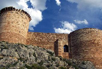 Por increíble que parezca, el castillo, de piedra sillar, de unos 3.000 metros cuadrados de superficie, alcanzó el aspecto y dimensiones que se aprecian en la vista lateral de la foto en apenas 12 ó 13 años (según nos explicó el guía turístico del castillo), pero nunca llegó a entrar en servicio, dado el cese de las hostilidades castellano-aragonesas. Se aprecia también la única de las 6 torres que posee (4 laterales y dos centrales) que llegó a terminarse.