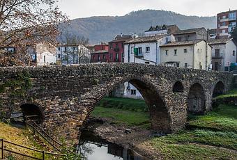 Empezamos este largo paseo viendo el puente viejo y la iglesia nueva de Sant Joan les Fonts, y ahora lo vemos desde el lado contrario.