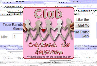 Sé que se trata de un proyecto ambicioso, de boca somos todos muy solidarios, pero de verdad creo que es necesario, es hora de demostrarlo. No os imagináis la sensación que da sentir que estás solo con tu problema, que todo por lo que has trabajado, no sirve para nada, que hay que empezar otra vez. Por eso El Club Cadena de Favores es un lugar donde siempre encontraréis respaldo, sea cuál sea el problema con blogger intentaremos solucionarlo juntos.Gracias a todos por molestaros en leer esta entrada y si decidís uniros al Club sois más que bienvenidos.Dejad un comentario en la entrada si queréis uniros, así os iré añadiendo en la lista.