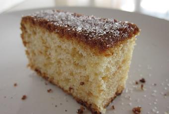 - Cubrir una bandeja de horno un poco profunda con papel de hornear y echar la mezcla, espolvorear con un poco de azúcar y hornear, en horno precalentado, a 190ºC en la balda inferior del horno encendido sólo en la parte de abajo durante unos 40 minutos o hasta que esté dorada por arriba.