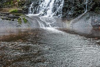 La colada de lava de hace 700.000 años a los pies de la cascada del Molí Fondo de Sant Joan de les Fonts, y el basalto de hace 150.000 a mis pies.