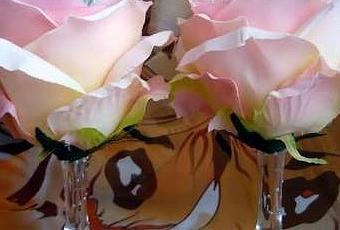 Aquí te enseñamos como realizar la decoración de hermosas copas. De este taller aprenderá a como decorarlas con sus propias manos. Agregarán mistificación y romanticismo a su evento. Para el trabajo, necesitamos: Copas, Pintura para vidrio y cerámica, Pegamento Silicon "Caliente", Brotes de rosas artificiales 2 piezas.