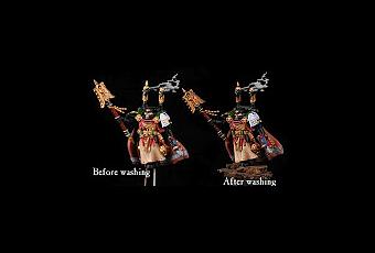 Hemos visto días atrás como pintar diversas miniaturas de la caja de Warhammer 40000: Venganza Oscura. Hoy BuyPainted nos enseña una técnica para mejorar dicha pintura empleando óleos (negro y azul). La forma en que los emplea es muy simiar al empleo que se le podría dar a las tintas.