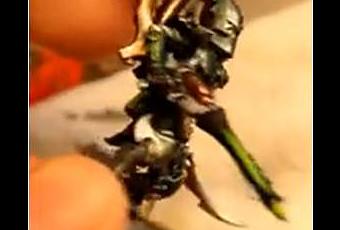 El esquema elegido es completamente diferente a cualquiera que hayamos visto antes. Se aleja bastante de los estándares con los que solemos pintar a los Eldar Oscuros. En total son tres vídeo tutoriales de algo menos de 1 hora de duración. Al esquema de color elegido su autor lo llama "Esquema Cazador de Necrones". Merece la pena.