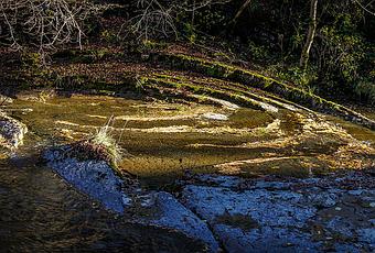 Curiosa forma la de la erosión del río en esta roca, que ha ido descubriendo los estratos como capas de cebolla.