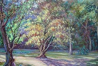 ÓleoAunque a primera vista no lo parezca, este paisaje pertenece a los jardines del Alcázar (Sevilla). Cualquier parque o jardín de una gran ciudad hace las veces de "oasis" del ritmo estresante de la vida urbana.