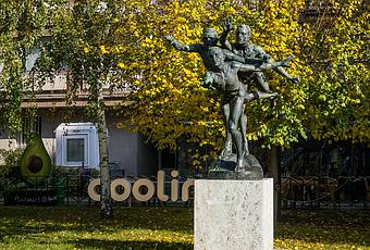 La estatua de los "Corredores" fue realizada por el escultor francés Alfred Boucher (1850-1934). Una copia de la misma, de 1913, está actualmente instalada en Bucarest, en Calea Victoriei 142-146, y está declarada monumento histórico e inscrita en la Lista de monumentos históricos de Bucarest.