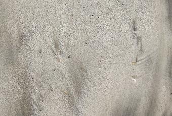 Una ligera corriente de agua recorre la arena de la playa Biesanz desde la selva y desemboca en el mar.