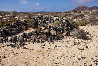 Improvisadas construcciones de piedra muy típicas en las playas lanzaroteñas para poder tomar el sol sin temer al constante viento.
