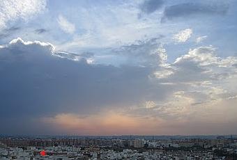 Hasta aquí la curiosa y original anécdota que me ha dado pie a colocarla en esta nueva entrada. Es un paisaje en el que no se sabe si se rinde un homenaje a la ciudad o a los cielos que la cubren con esas nubes de un contrastado colorido pero muy matizado y casi poético. Desde un privilegiado balcón este paisaje urbano es lo que se extiende ante mi vista: todo un gigantesco espectáculo que me atrae hasta el punto que necesariamente tendré que llevarlo algún día a la pintura...